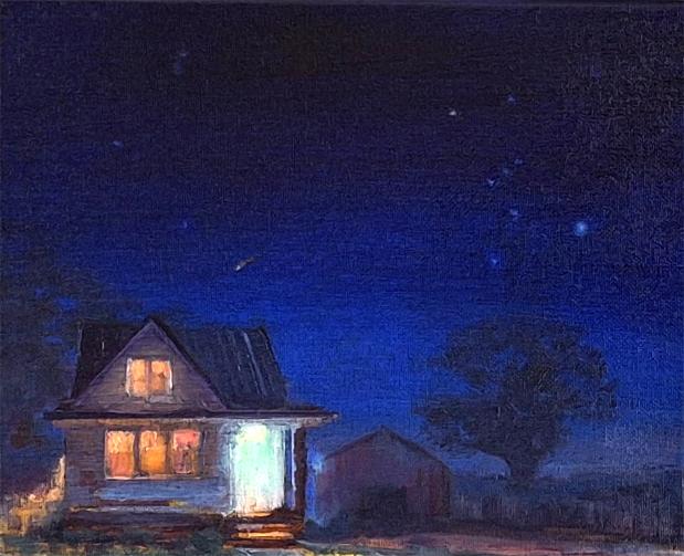 "Farmhouse, 5am (with constellation Orion)" 8 X 10